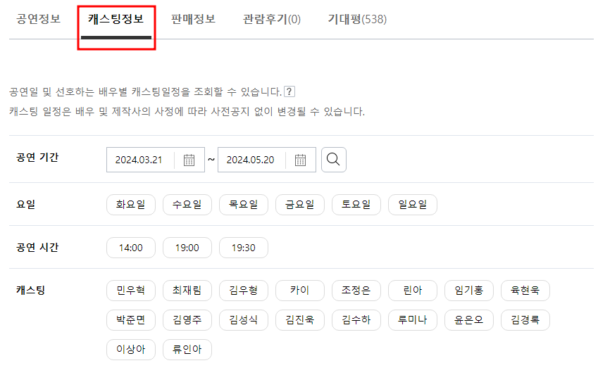 캐스팅 배우 일정 확인하기