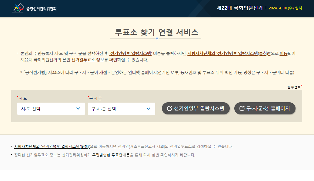 본인 등재번호와 투표소를