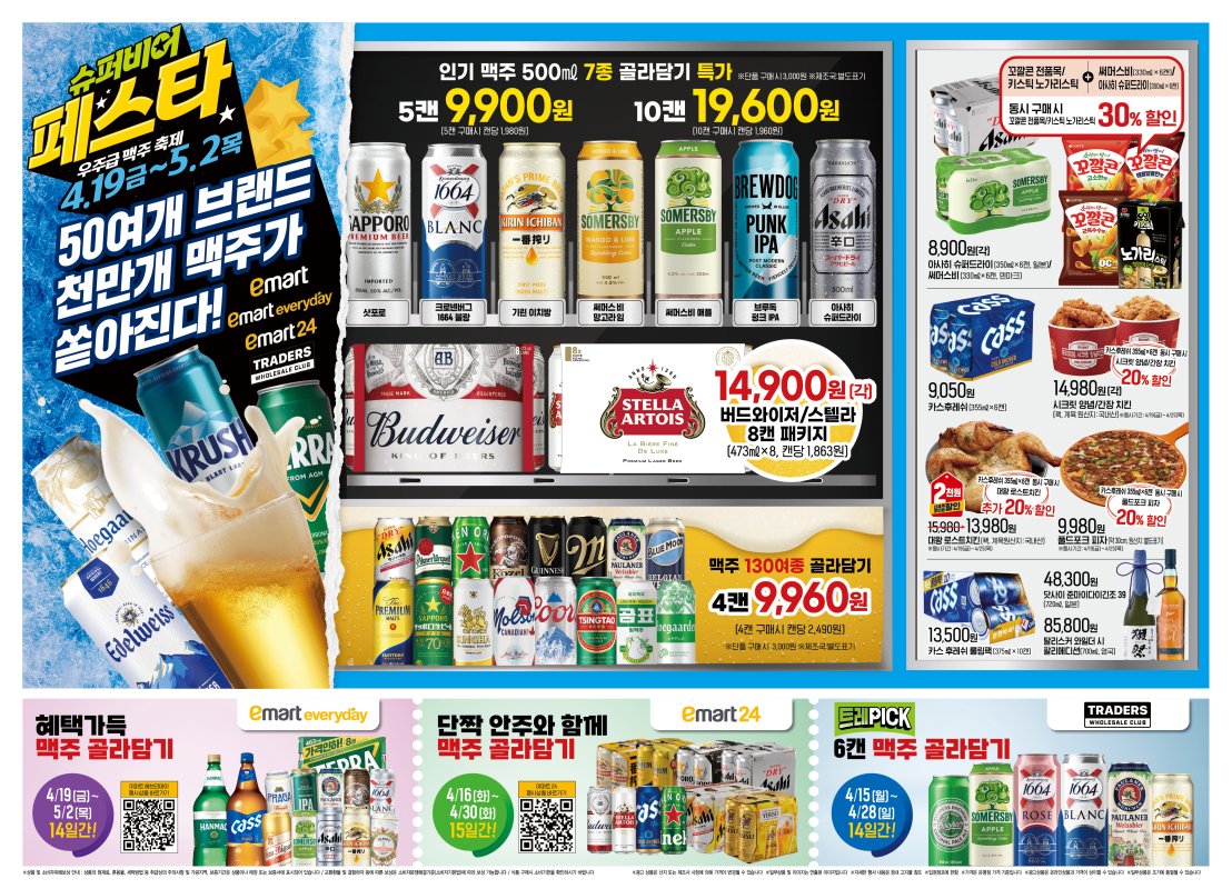 이마트 4월 마지막 주 / 금주 전단지 행사를 안내드리려고합니다. 행사는 4월19일(금) ~ 5월2일(목)까지 진행되는 행사입니다. 참고하셔서 방문하시기를 바랍니다!