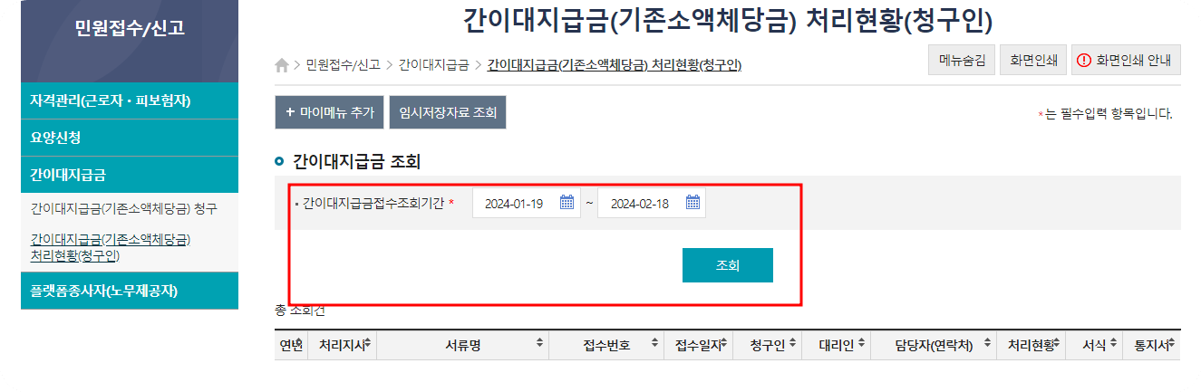 ✅ 간이대지급금접수조회기간을