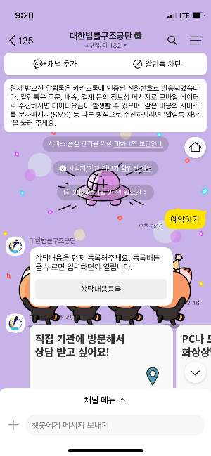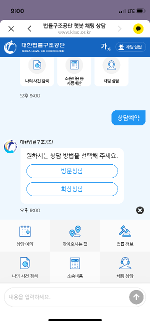 구비서류 준비완료 후 카카오톡 법률구조공단을 통해서 상담예약을 진행합니다.