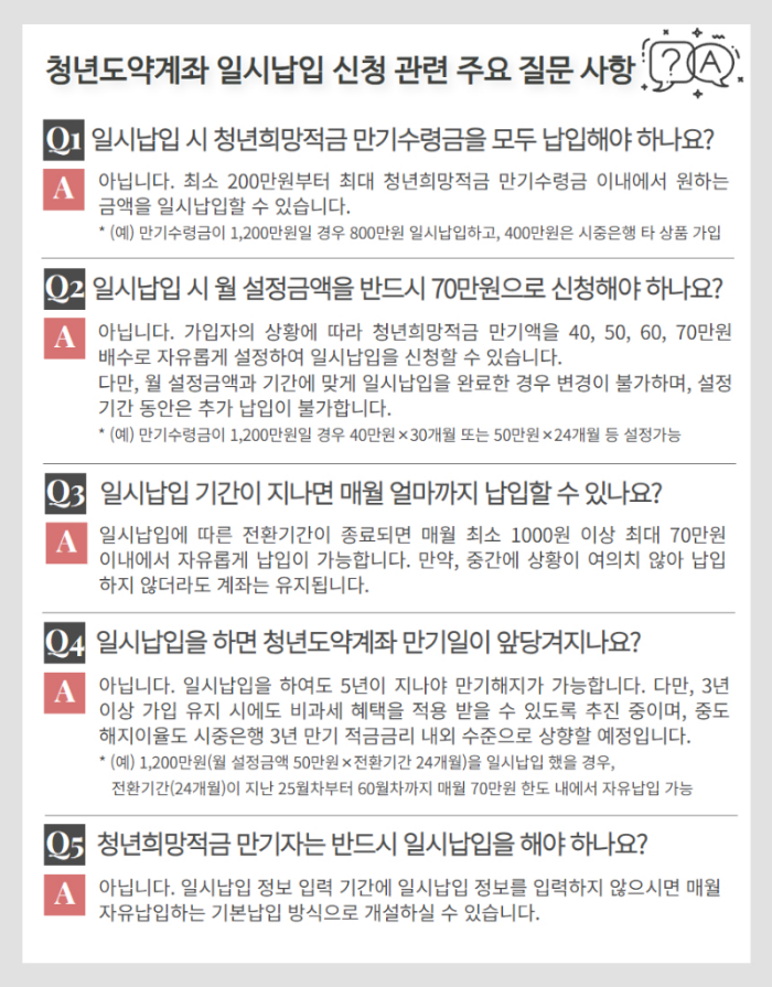 2. 청년도약계좌 일시납입 절차 및 주요 질문