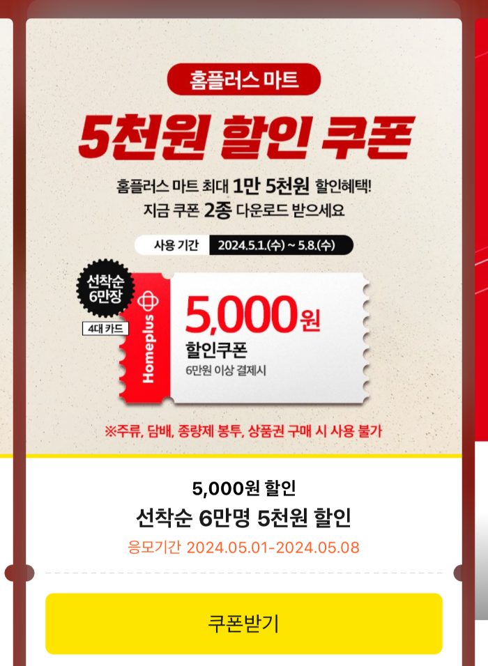 홈플러스 5천원 할인쿠폰 받기