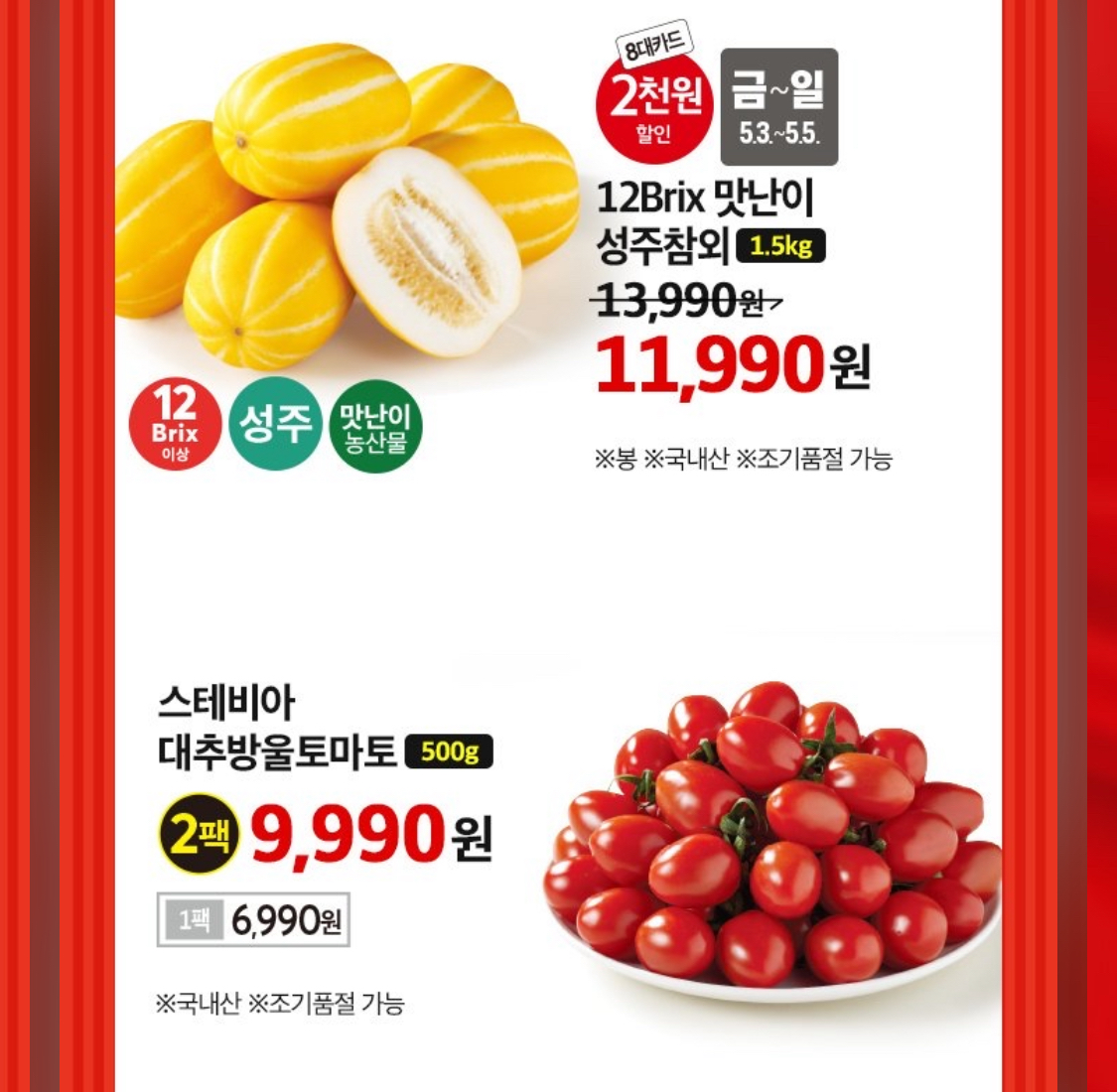 일부 품목 조기품절 가능