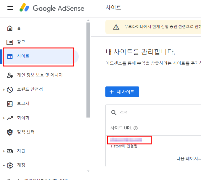 에드센스 사이트 접속