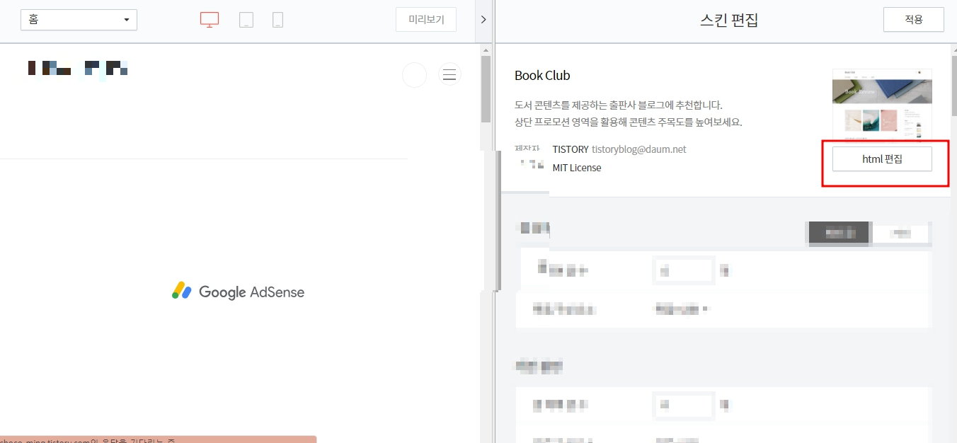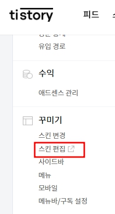 티스토리 - 왼쪽 꾸미기 - 스킨편집 클릭
